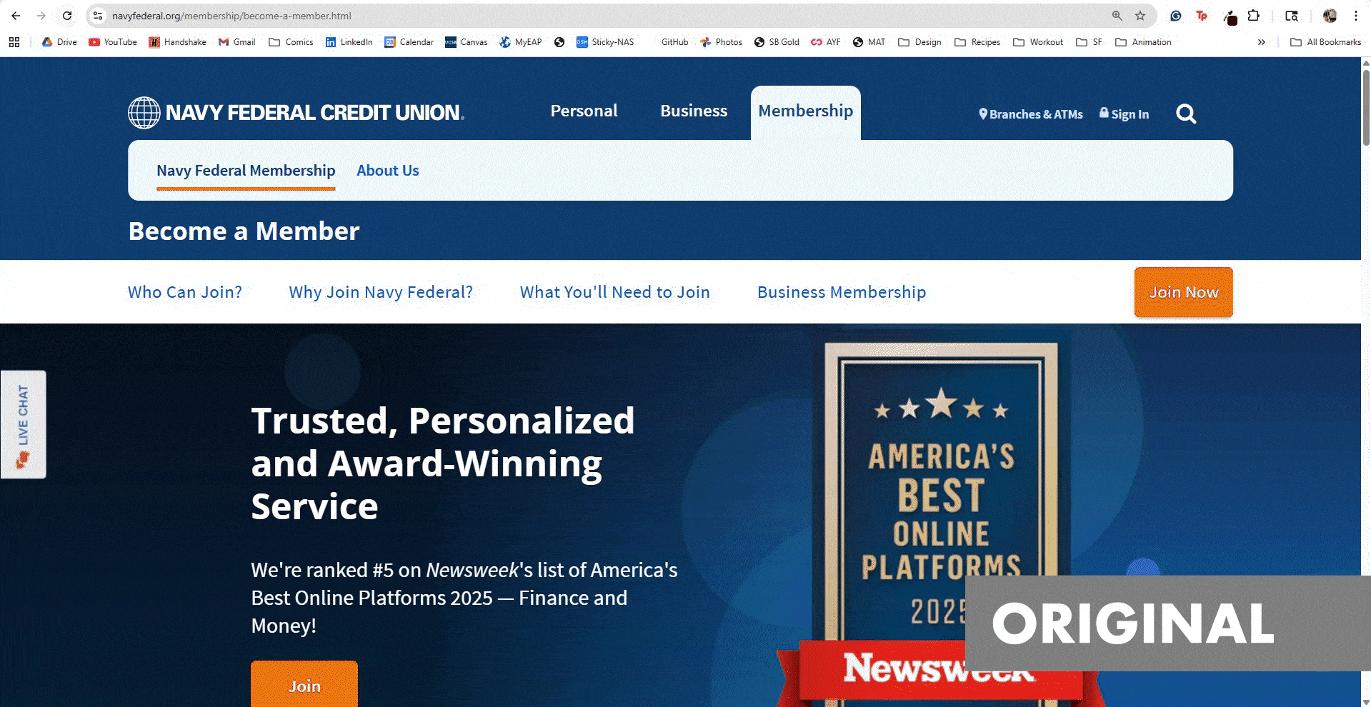 Redesigning Navy Federal's membership page is of critical importance as the first link Chrome provides searching for the bank. Researching their branding and mission goals, I drafted designs revising the banner graphics and the UI of the site's main navigation while remaining within their brand guidelines. I sketched, designed, 3D modeled, photographed, edited, and animated a video sequence of the credit card. I created a social media version and a live coded web prototype connecting the background animation to the user scrolling.