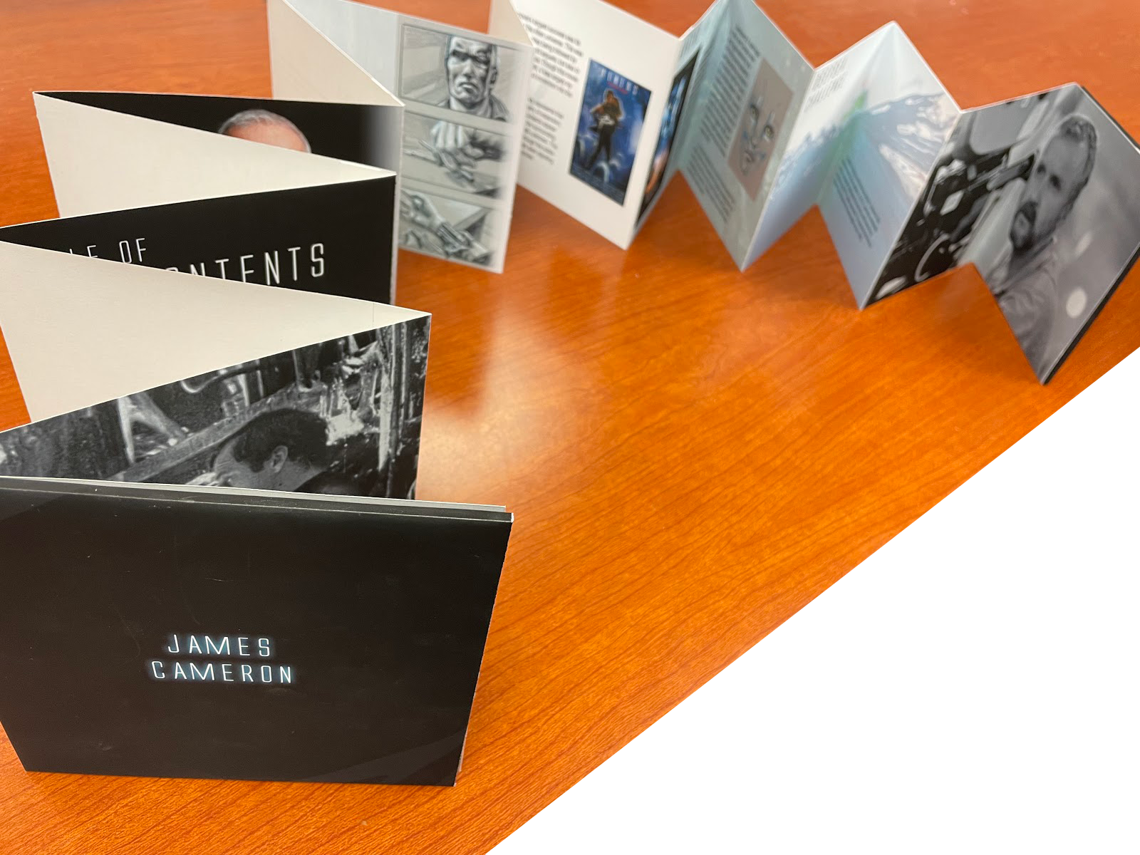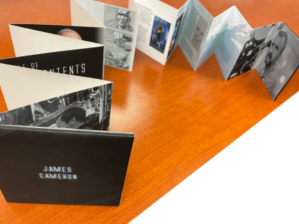 A designed and produced booklet featuring the work of director James Cameron. Featuring the behind the scenes storyboards to his movies that have drawn him as an inspiration to me in curating projects, this production covers his background, work, and achievements from the beginning to his career to the published date.