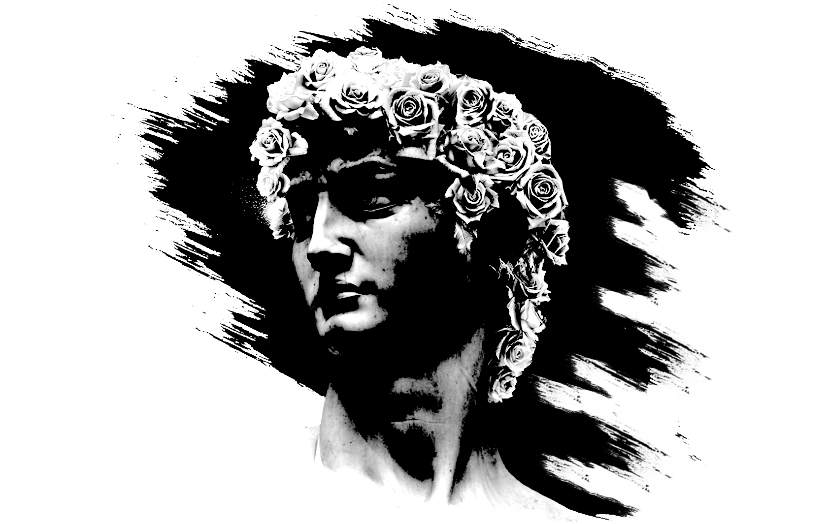 I apprenticed in a tattoo shop for over two years, starting while I was still a high schooler. My first time tattooing skin was with a rose on my own leg. Placed on the opposite leg, this tattoo design of "David" was made to look up at the rose. At the time the rose was like Goliath to me, and now I wear it.