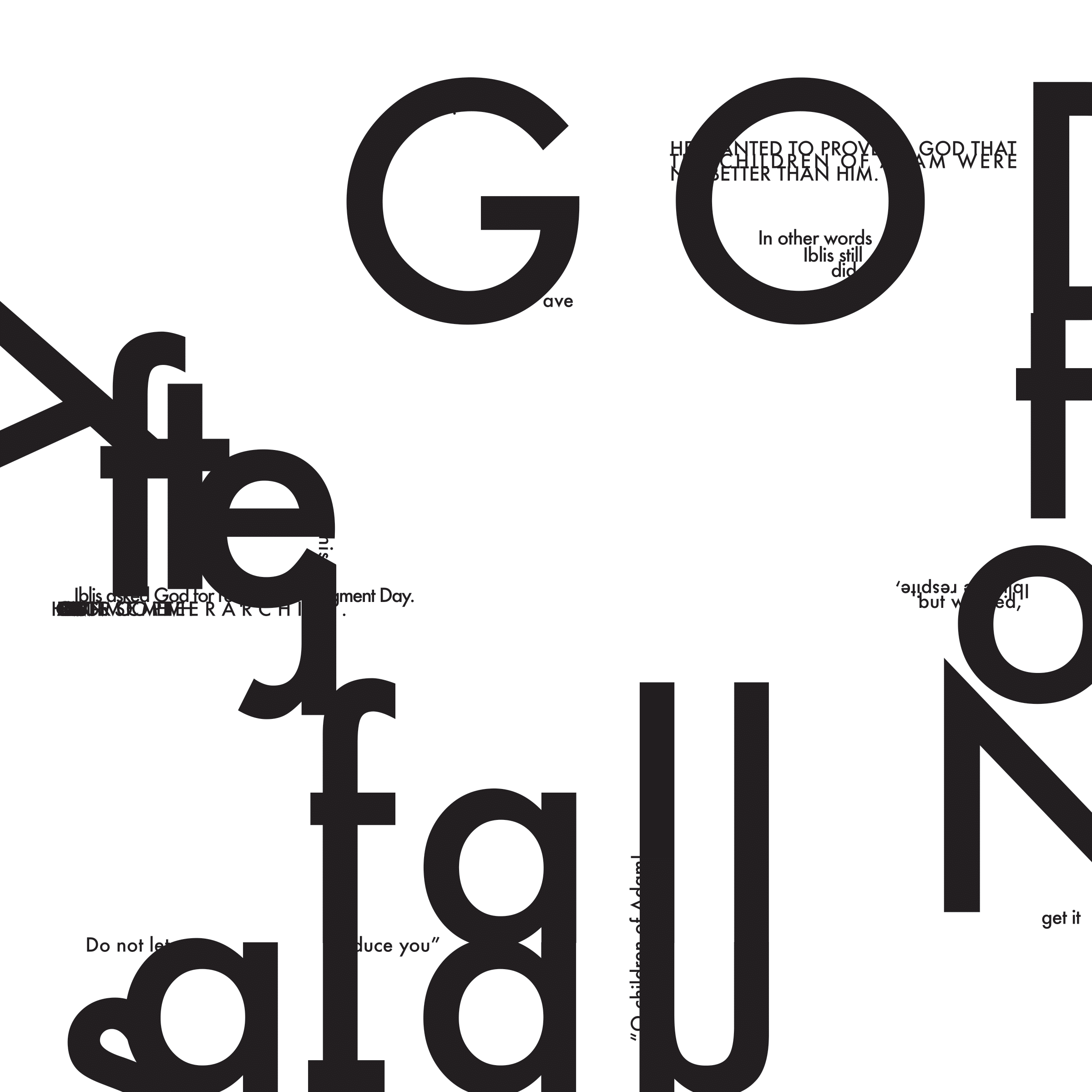 With a challenging focus on typographical composition, this project repurposes text from "Divine Justice and The Human Order: An Islamic Perspective" by Azizah Y. al-Hibri to guide the design's inspiration and direction.
