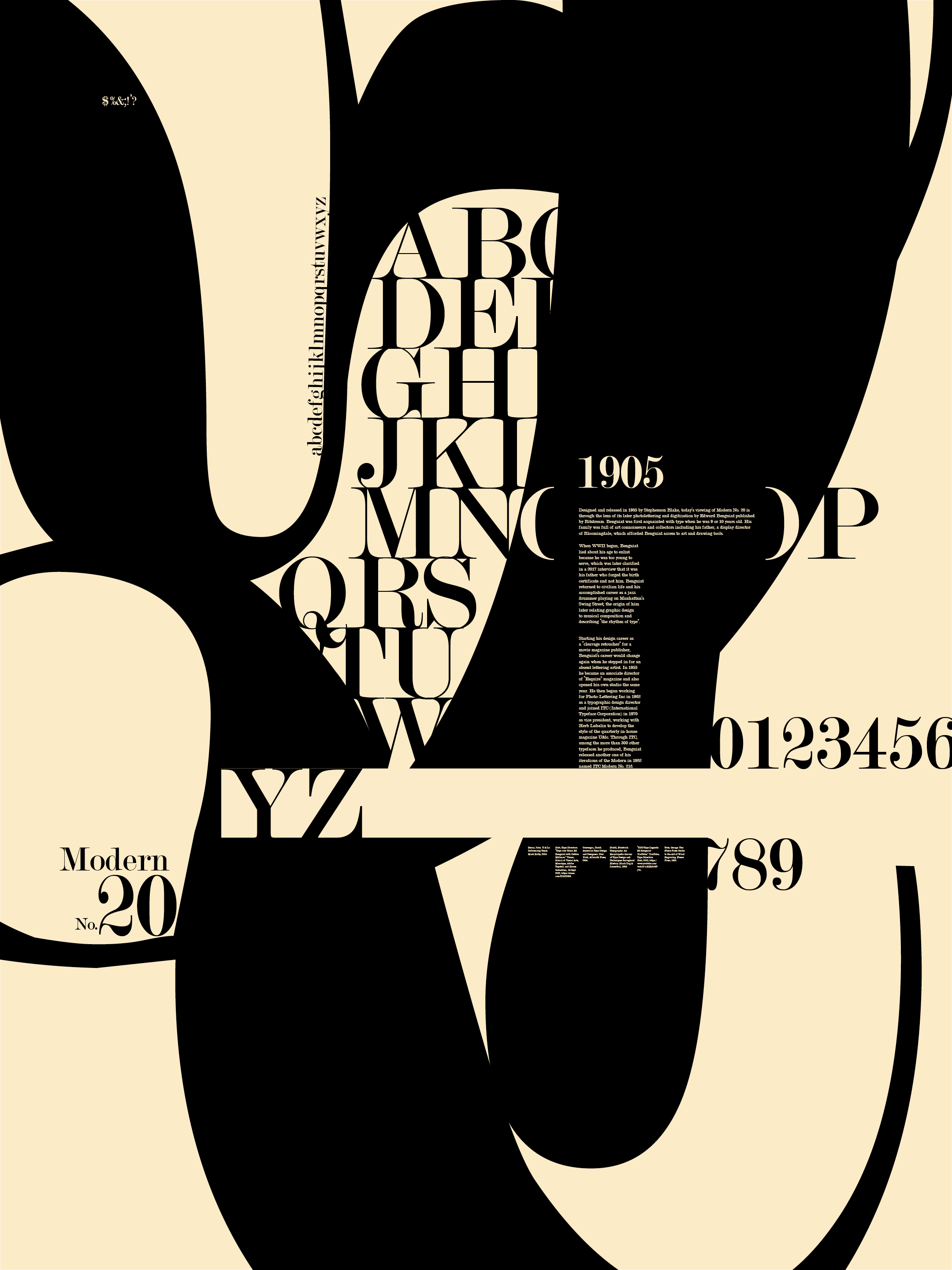 This print project heavily sources imagery from the original in-house design magazine the font Modern No. 20 was published in and reflects on its history and creator Stephenson Blake. From color to composition, this piece derives inspiration from the past while applying new design concepts and methods.